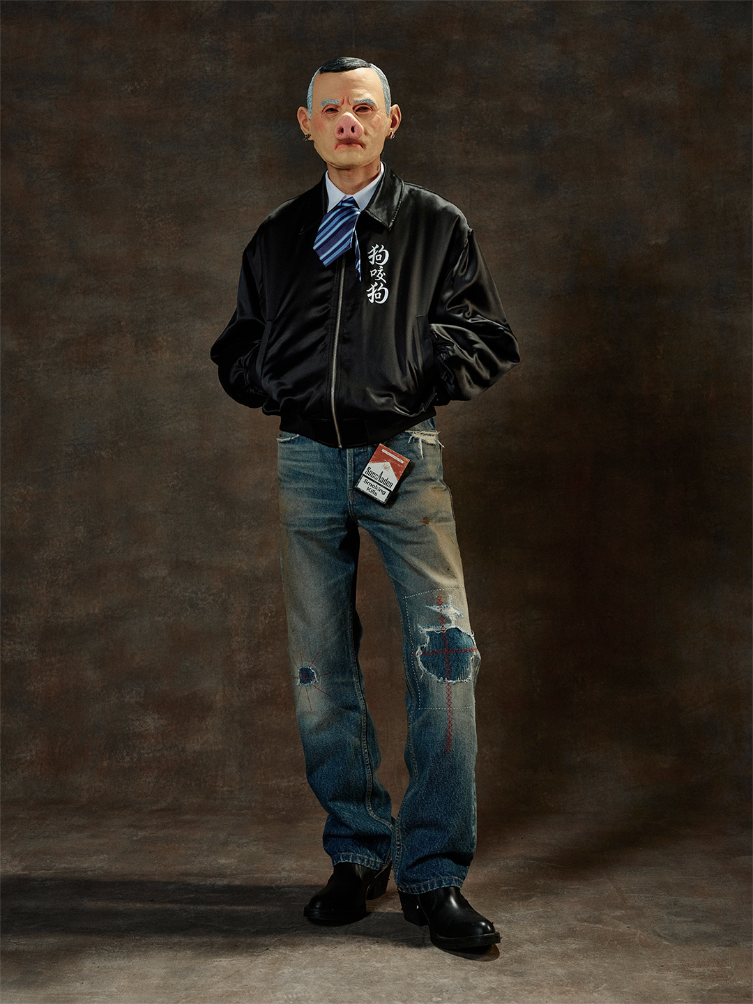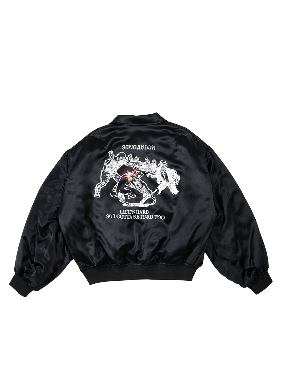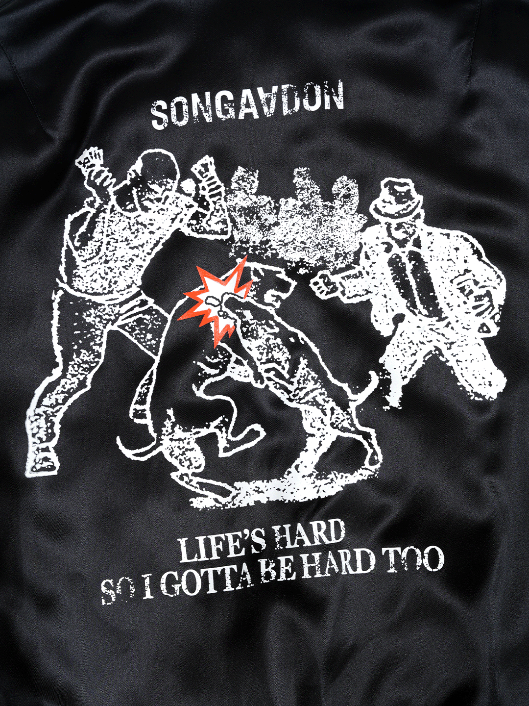 · Dog bites dog embroidery on front chest