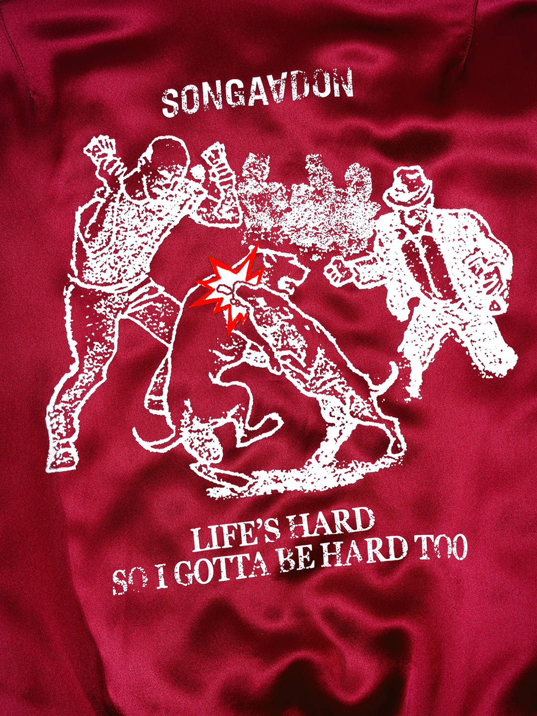 · Dog bites dog embroidery on front chest