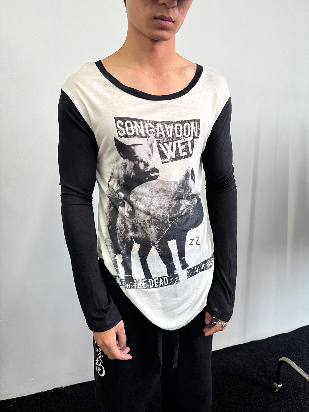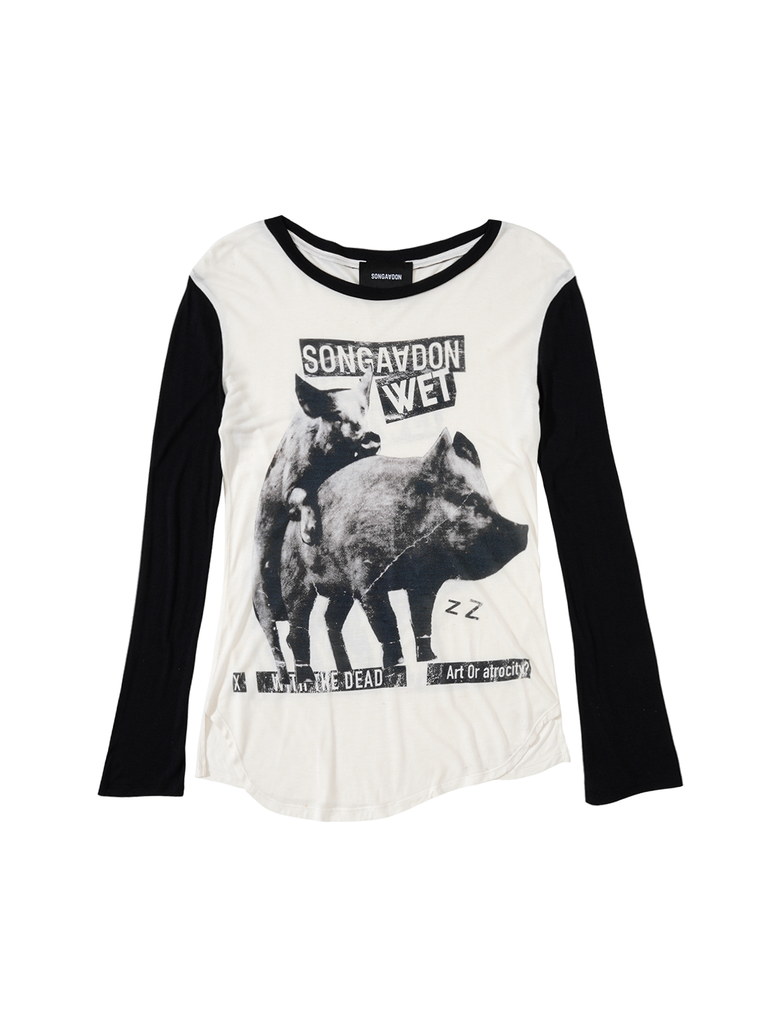 · "Art or Atrocity" themed print on the front