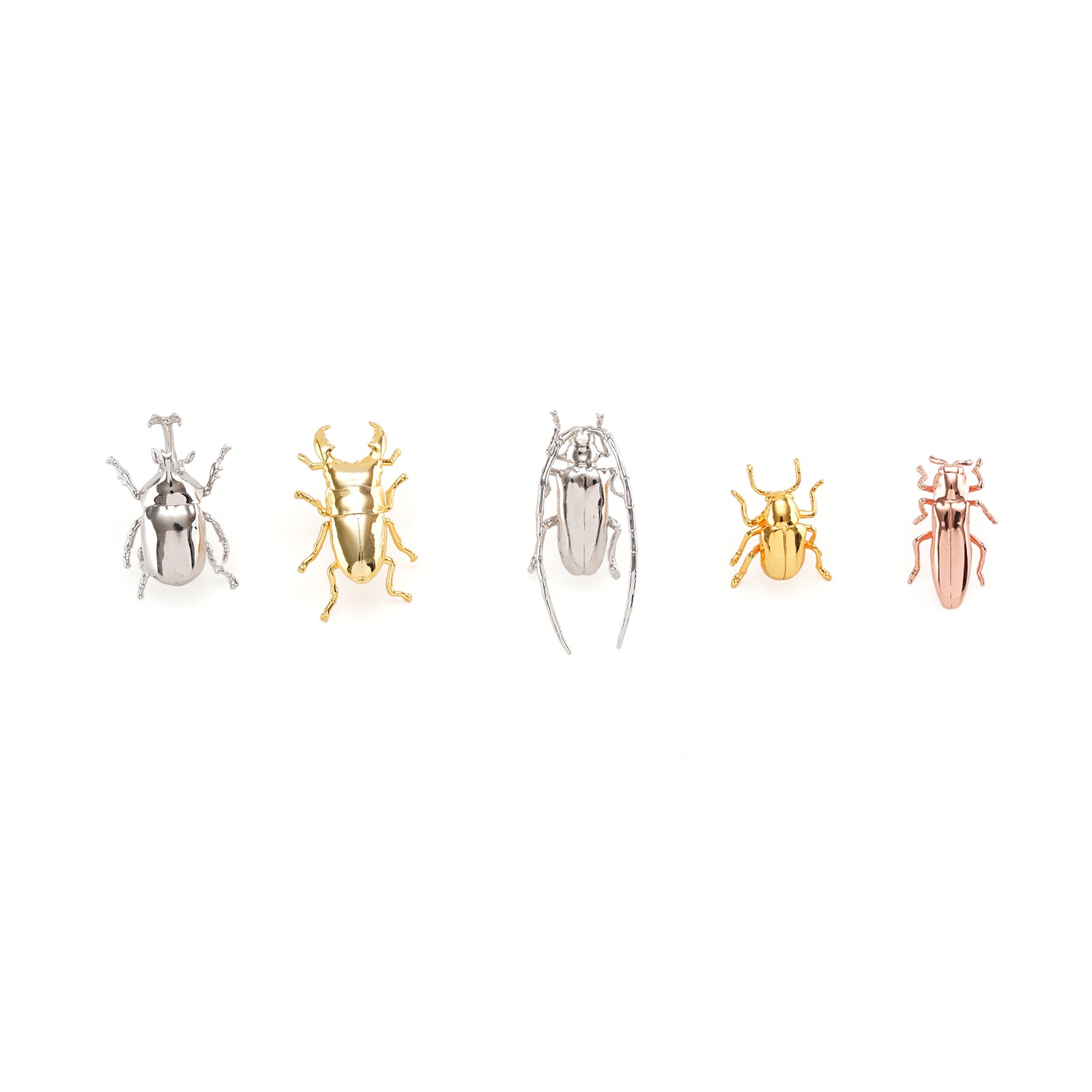 • Ohrring in Form eines Blattkäfers ( Rosévergoldetes Kupfer)