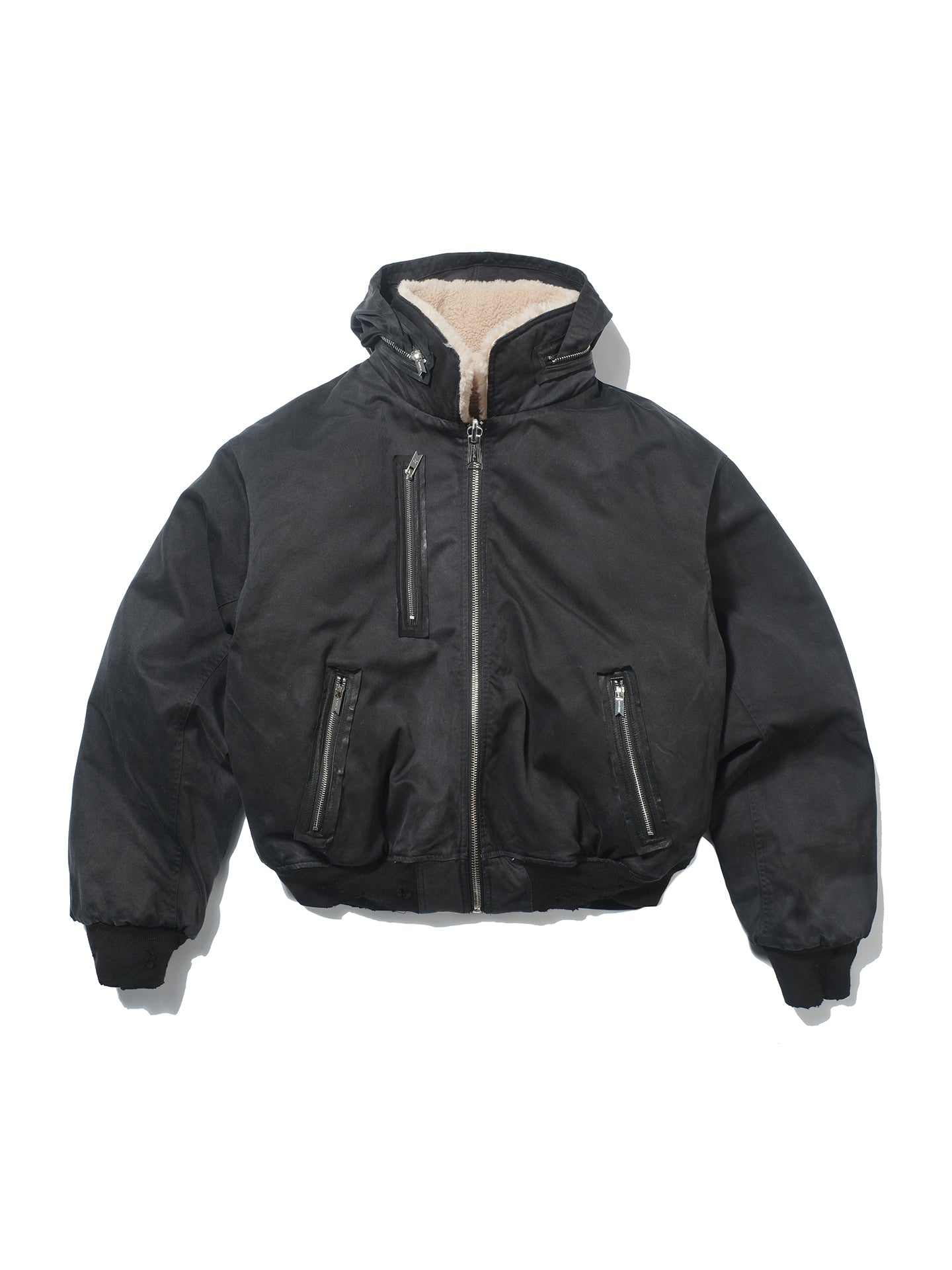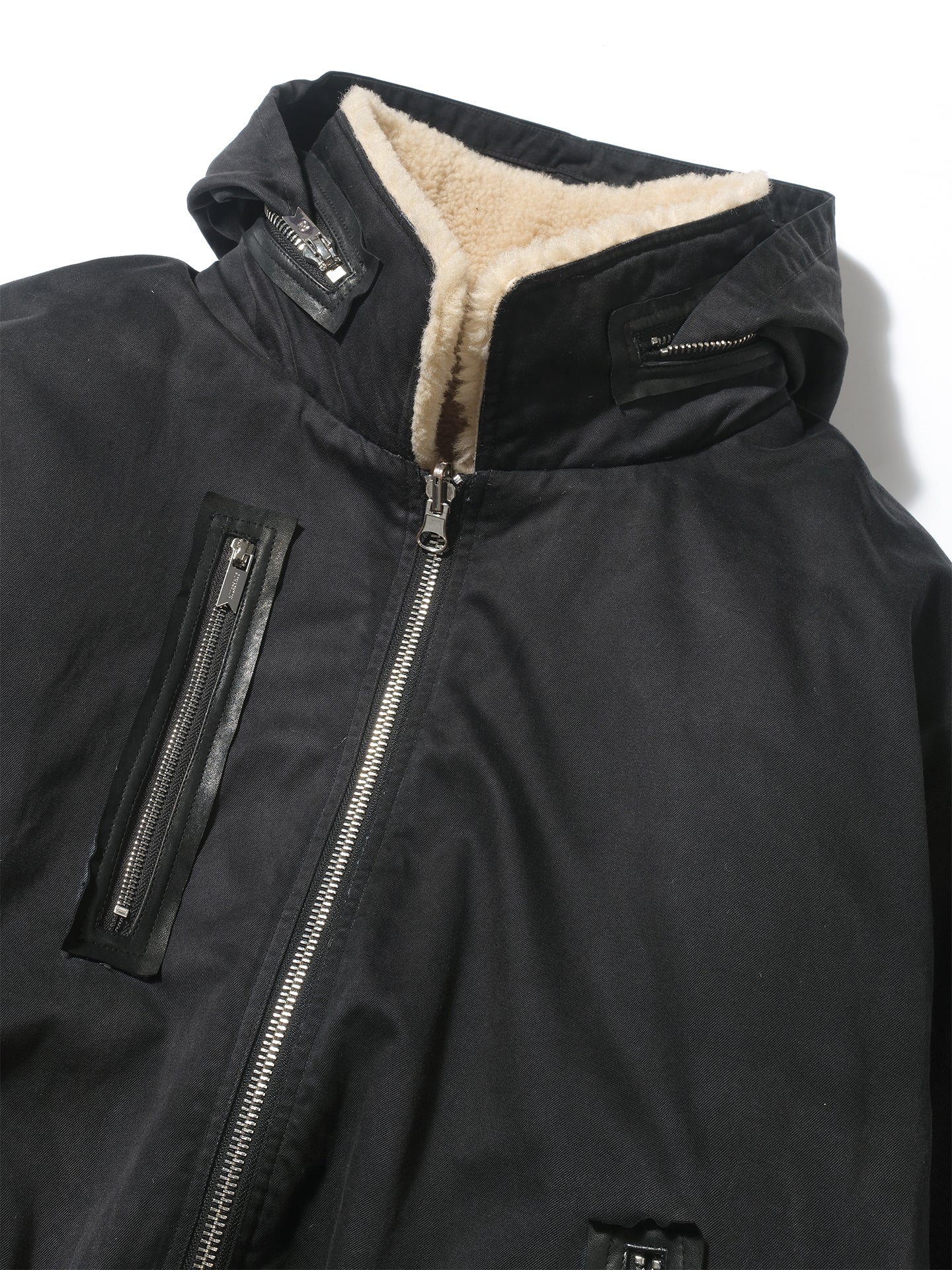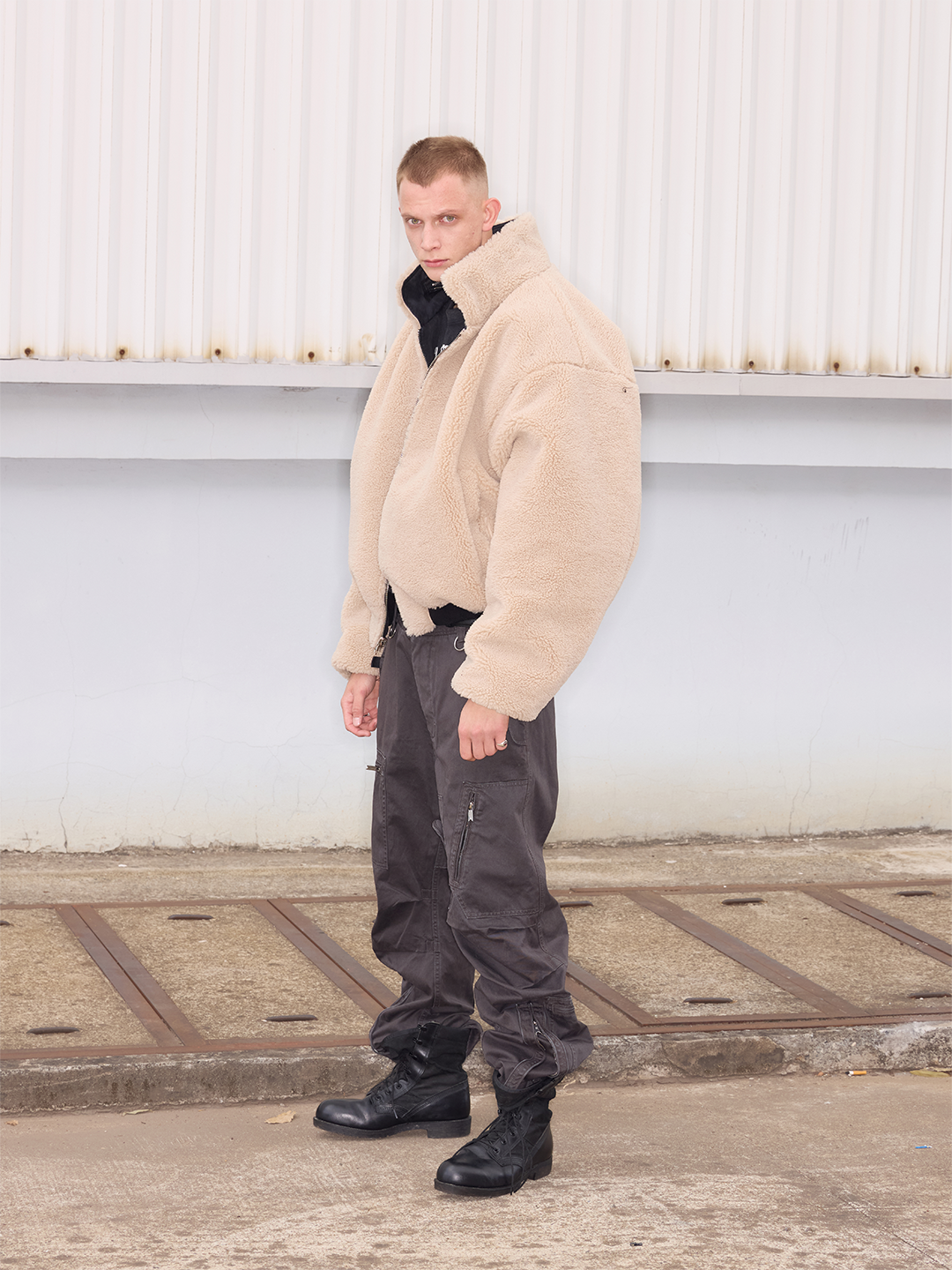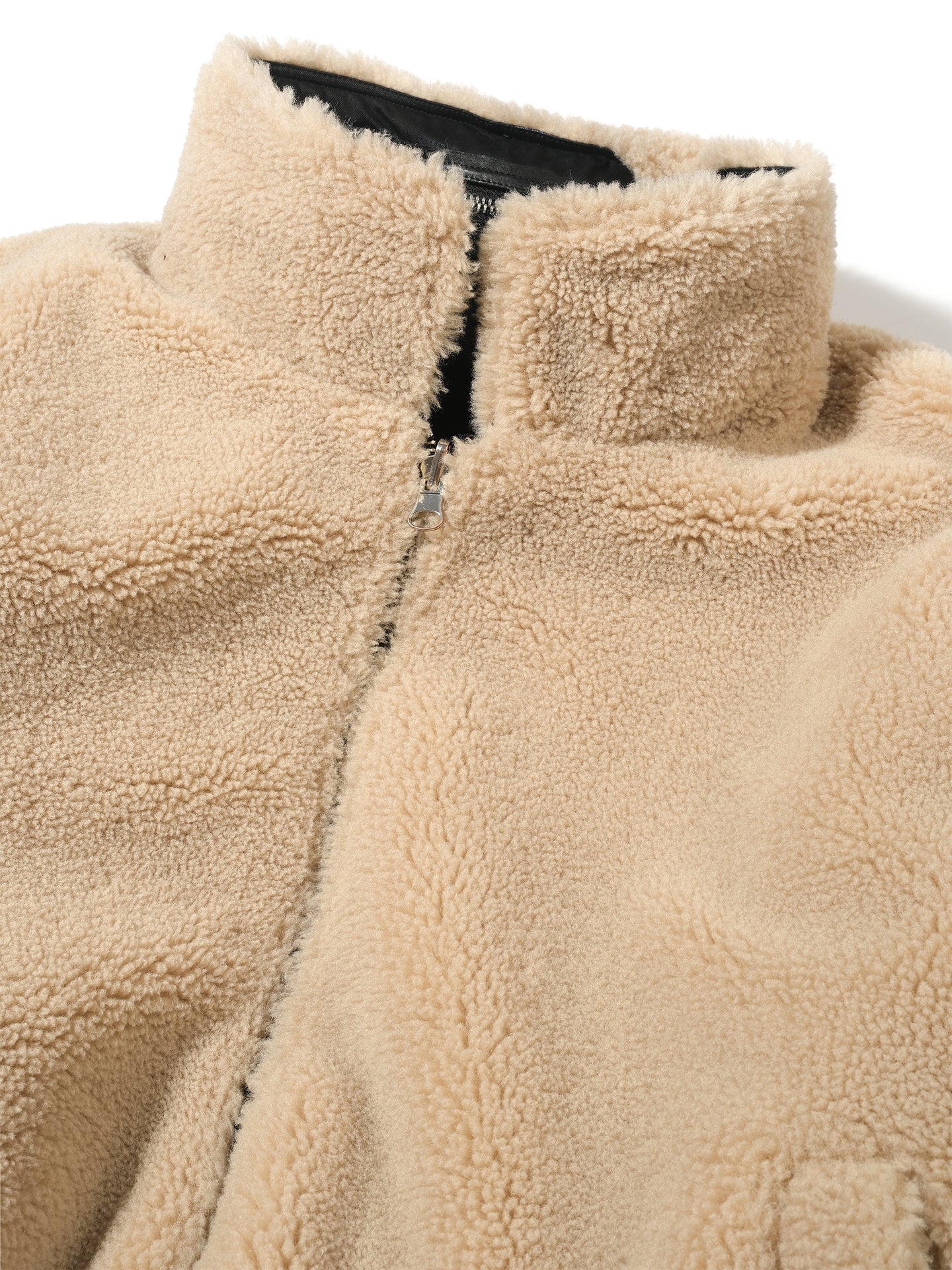 Lambswool and fur jacket / long-staple cotton washed reversible jacket