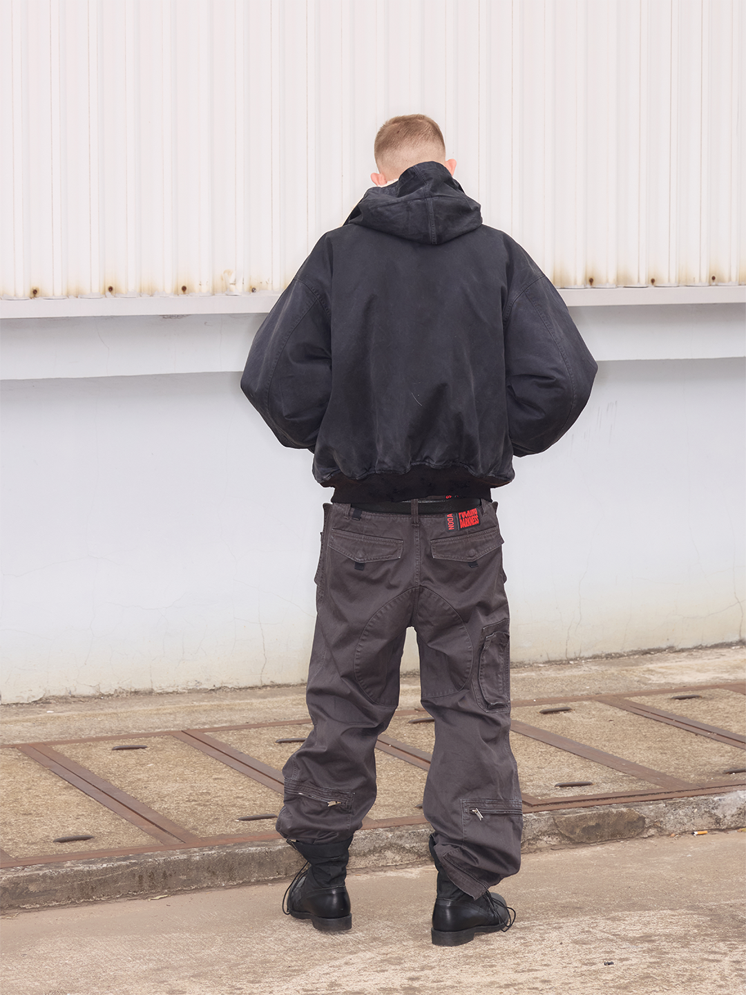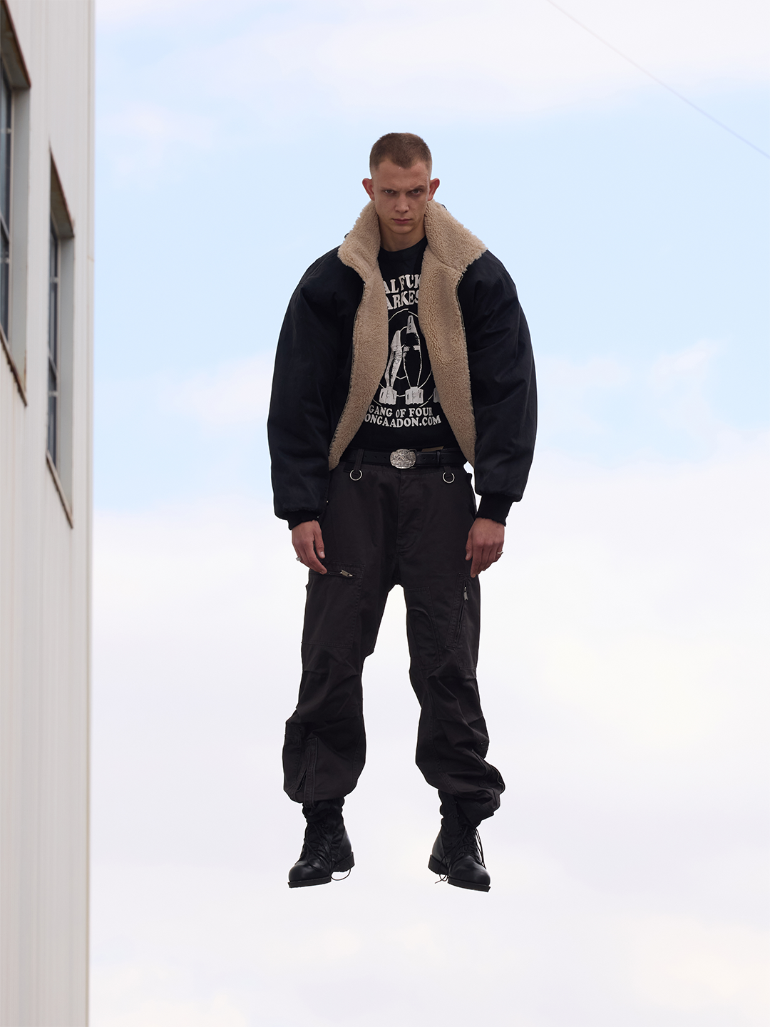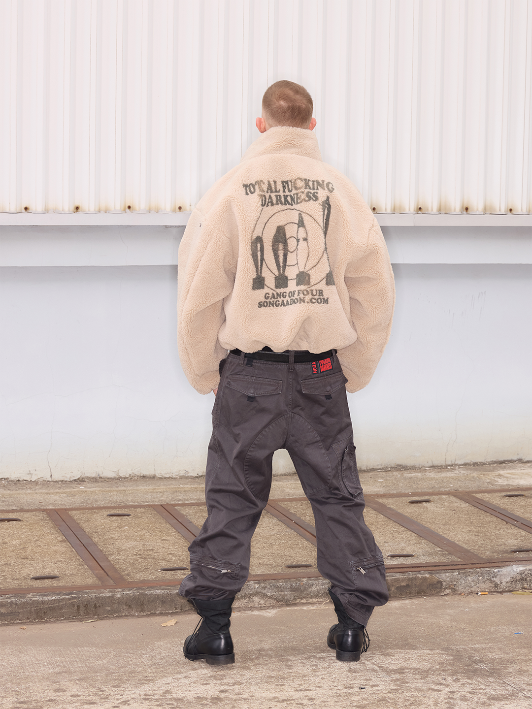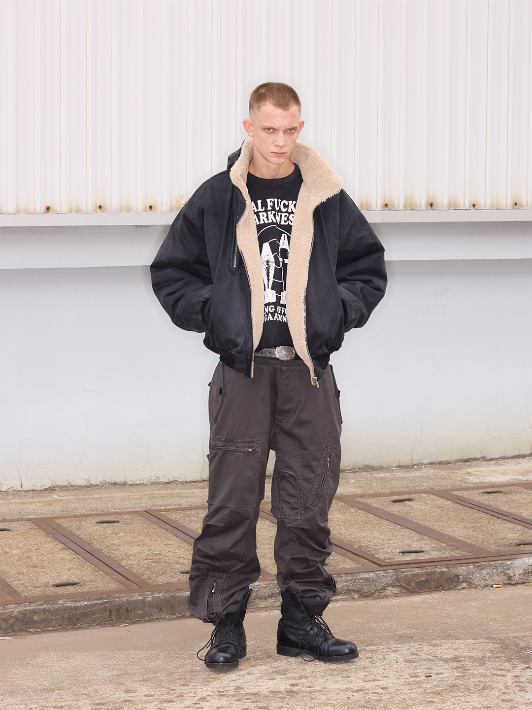 Lambswool and fur jacket / long-staple cotton washed reversible jacket