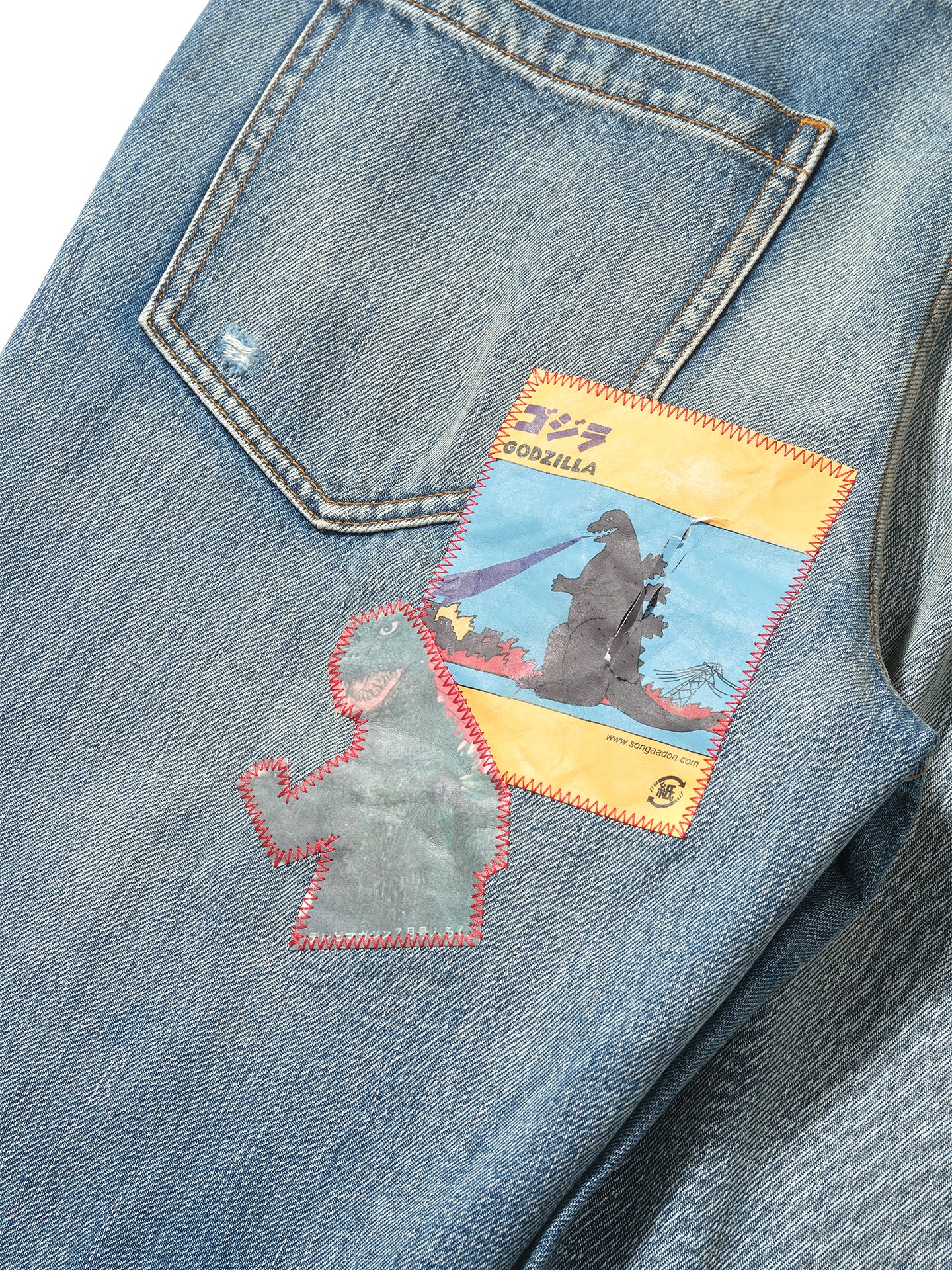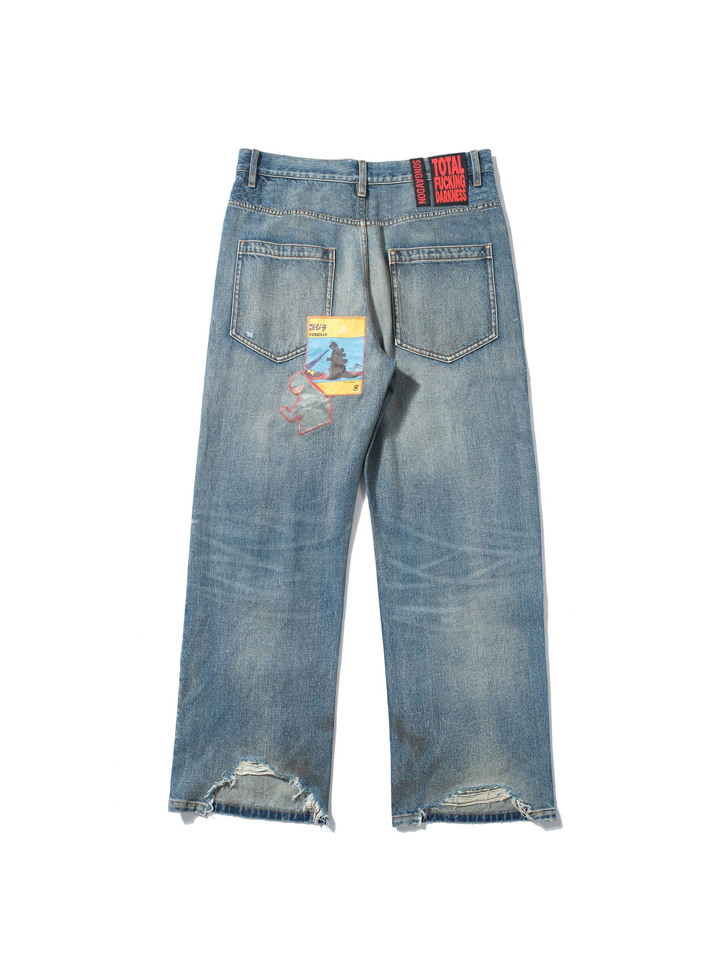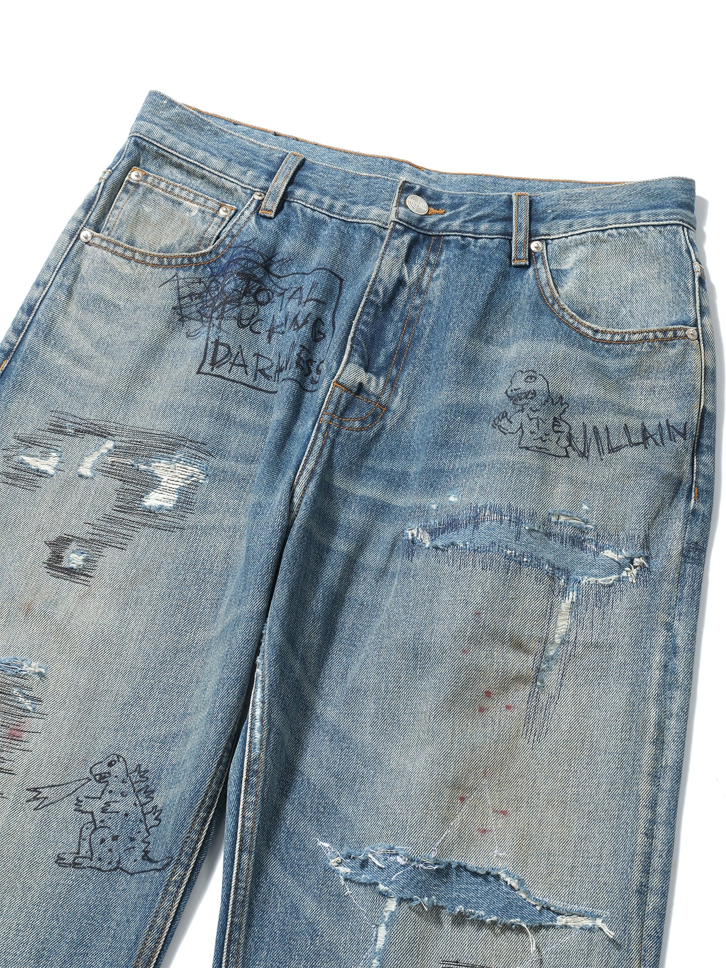 Random stitch appliqué embroidery rhinestone jeans