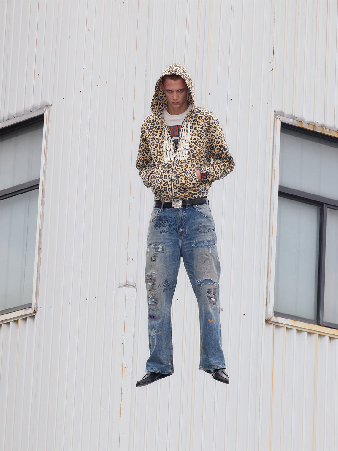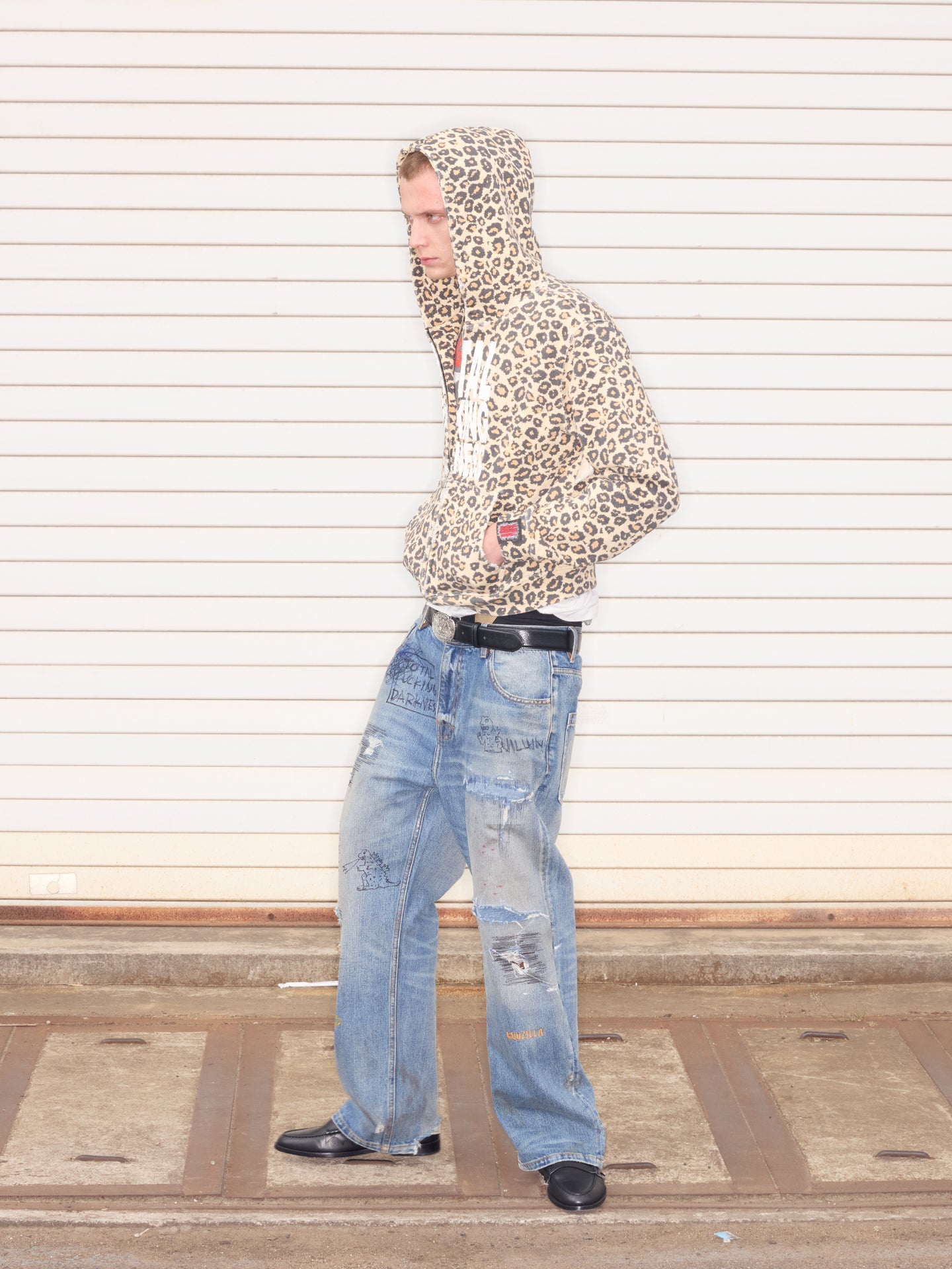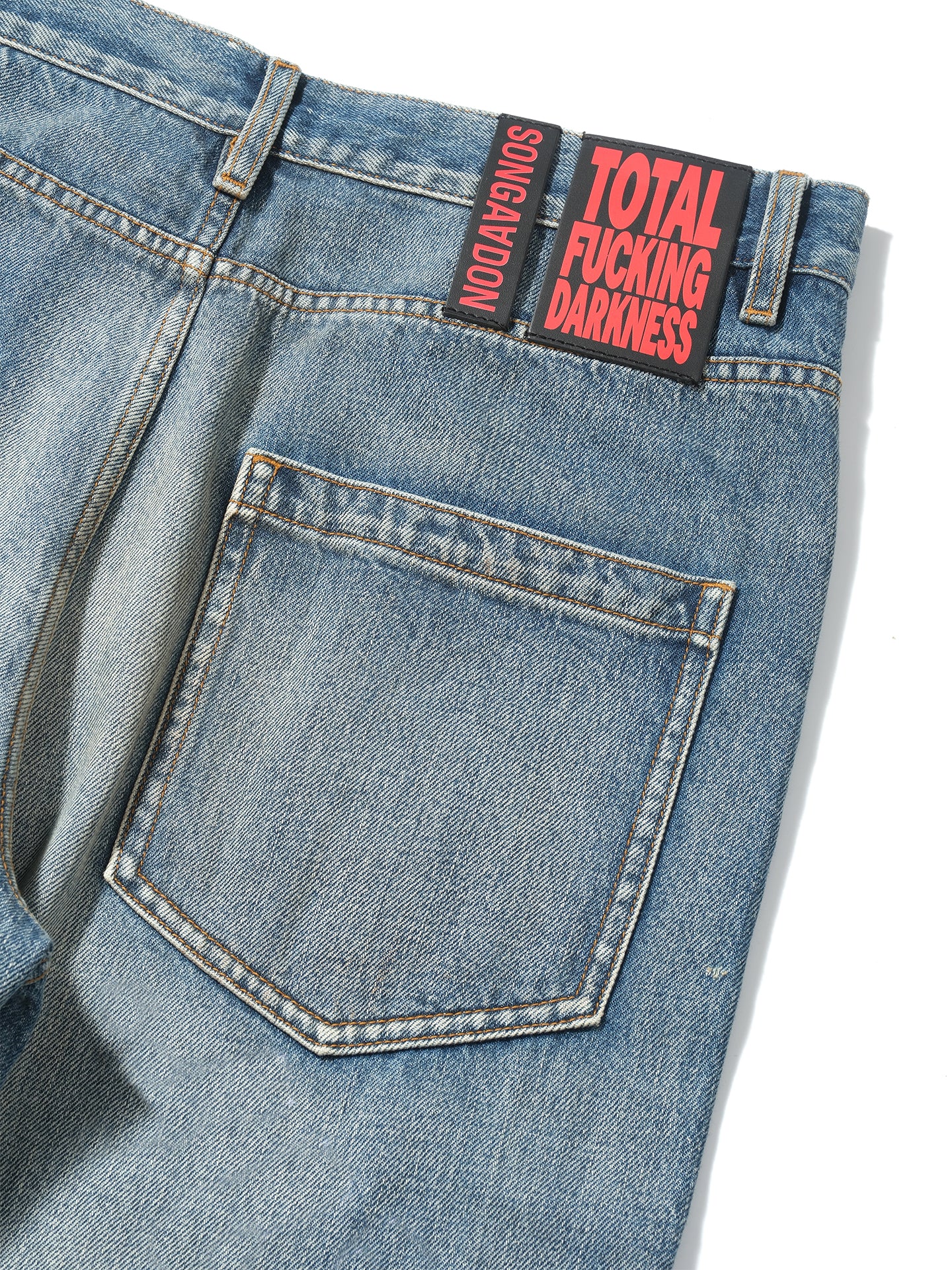 Random stitch appliqué embroidery rhinestone jeans